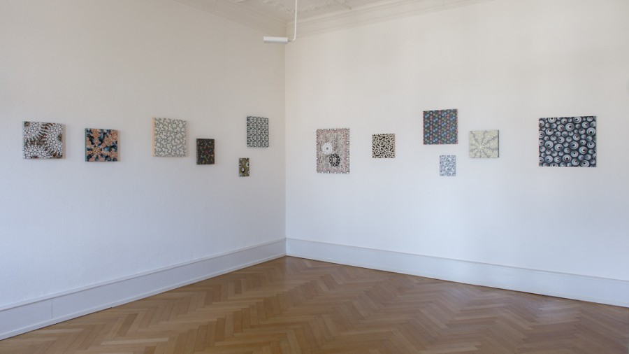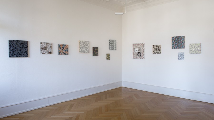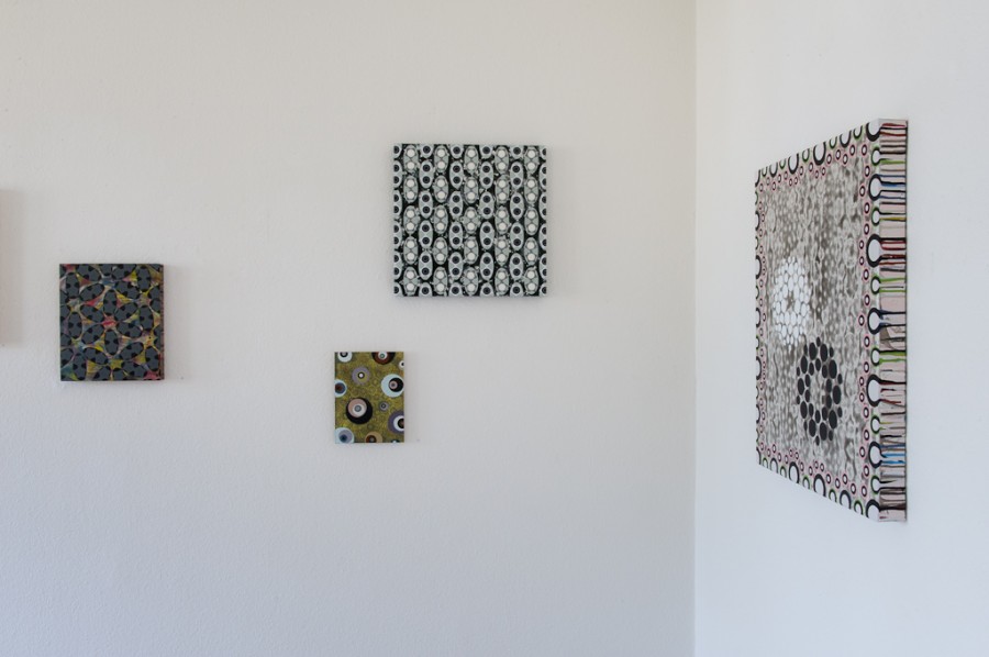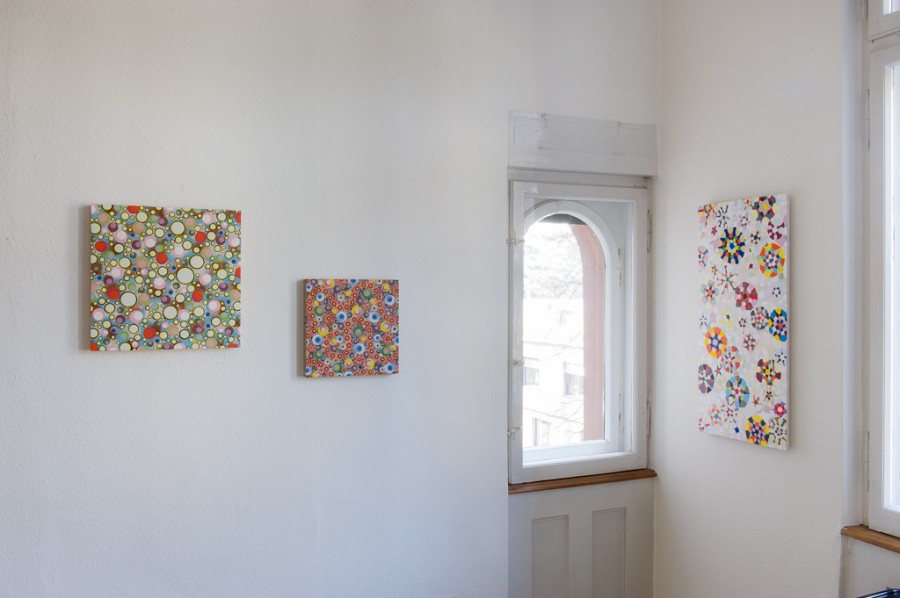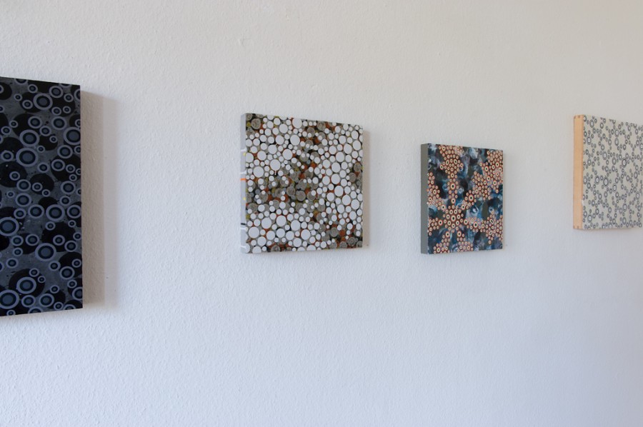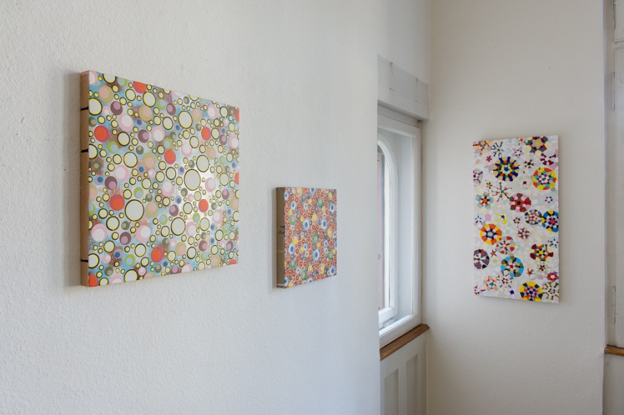"Die malerischen Untersuchungen Ralph Merschmanns zielen auf ein Maximum an visueller Dichte: Ausgehend von farbigen Punkten und Kreisformen, die nicht im herkömmlichen Sinne gemalt, sondern mittels spezieller Verfahren auf den Bildträger aufgebracht werden, organisiert er seine Bilder sukzessiv, aus der Schichtung und Überlagerung dieser modularen Grundfigur zu reichen, ornamentalen Kompositionen. ..."