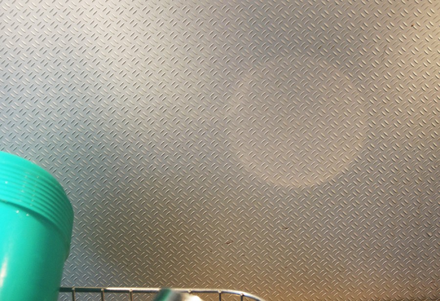 ihrer Küche, doppelt verfremdet durch Überdimensionierung und Farbe. Blau war