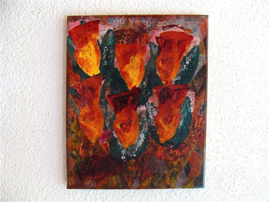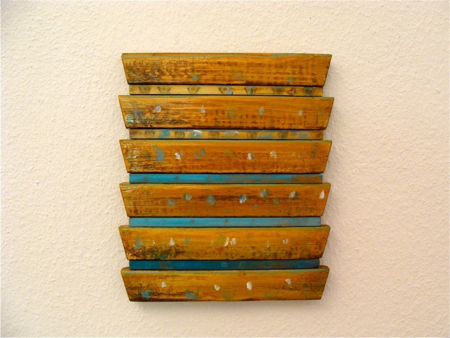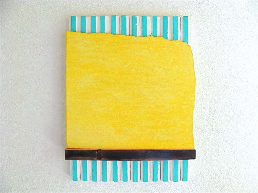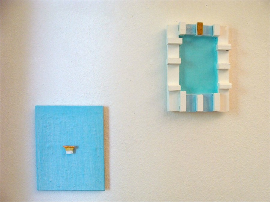all wall and a little bit 2009 various paints and sand on wood 30x24x3,5 cm