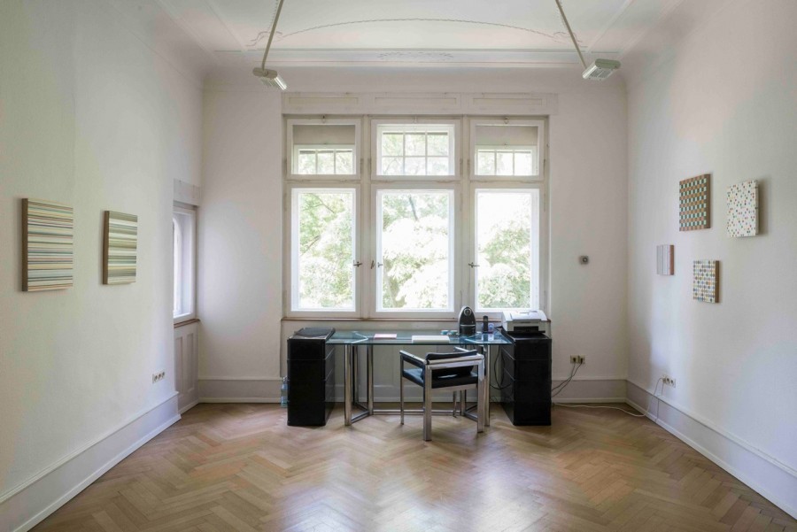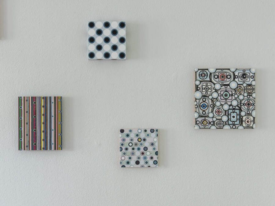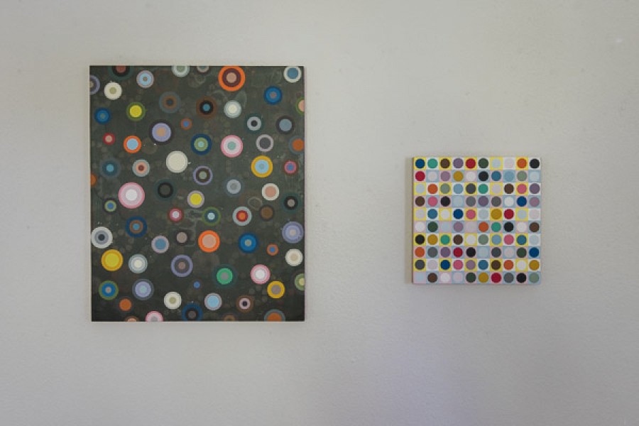 Punkte und Kreise sind seit je Merschmanns Bildmodule. In der Ausstellung in der Galerie G in Freiburg kommen Linien hinzu. In manchen Bildern verbinden sich die Module in ein und demselben Bild zu Mischformen. Man hat die sehr eigenwillige Malerei des in Köln lebenden Ulrich-Erben-Schülers mit so unterschiedlichen Vorbildern wie der Ikonenmalerei und der Pop-Art in Verbindung gebracht - Vergleiche, die tragen. … Viele Bilder tendieren zum Bildobjekt wie eine Malerei, in der das Raster der Farbkreise sich an den Seiten in ausgeschnittenen Kreisen virtuell fortsetzt. Auch sonst scheint die Welt der Pixel, Bits und Bytes als dezent verschwiegener Bezugsrahmen auf.