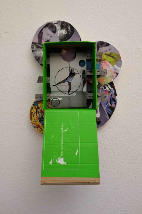 Wenn ein gemeinnützig arbeitender Verein (Künstlerbund Baden-Württemberg) mit kommerziell arbeitenden Galerien ein gemeinsames Projekt initiiert, dann wird die Frage nach dem Verhältnis zwischen Kunst und deren kommerzieller Verwertung zumindest berührt. Hösl und Mihaljevic tragen dem mit ihrer Ausstellung "auf Anfrage" insofern Rechnung, als sie ihre Arbeiten in Verpackungen, die aus einfachen, gebrauchten Kartons bestehen, präsentieren und dadurch deren Warencharakter mit in den Blick nehmen.