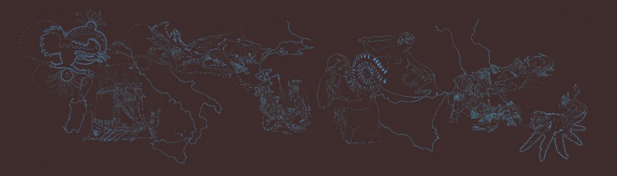 Odyssee - von den Hugenotten bis zur Gegenwart 140x112,5cm Filzstift auf PET-Folie 2017