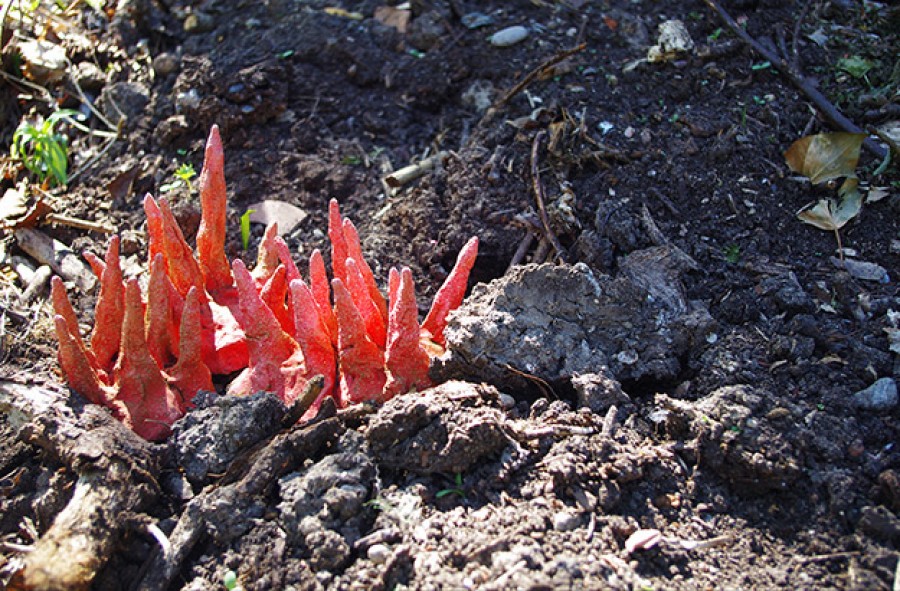 In dieser Ausstellung nun kehrt sie Blick und Aktion gewissermaßen um: Anorganische Gewächse invadieren Organisches - die Bühne ist ihr Garten in Winterweiß und Frühlingsgrün.