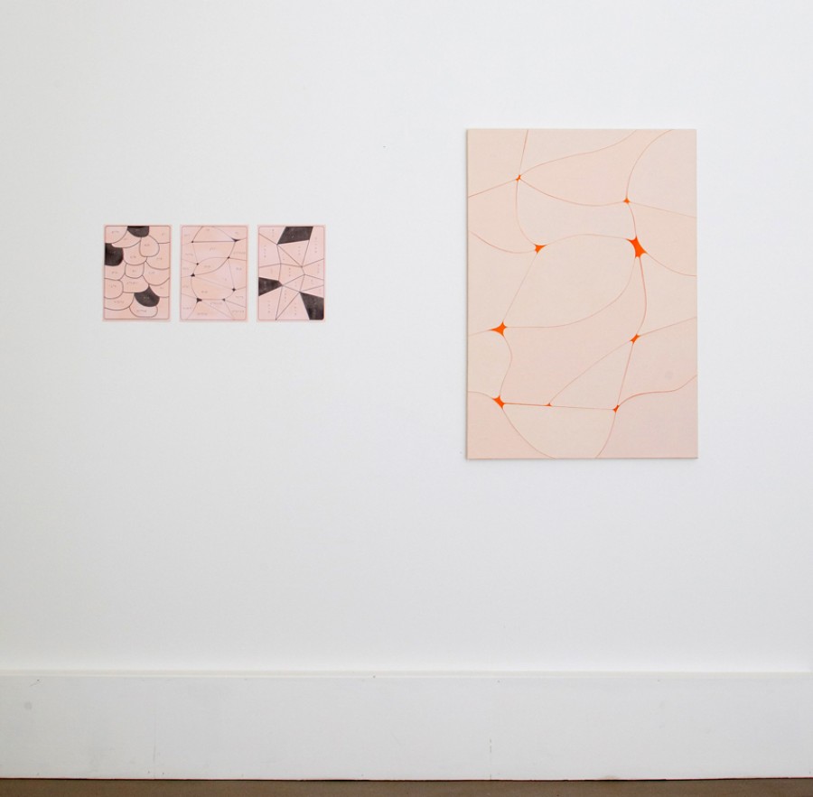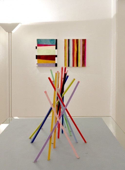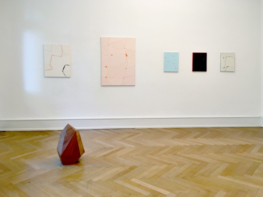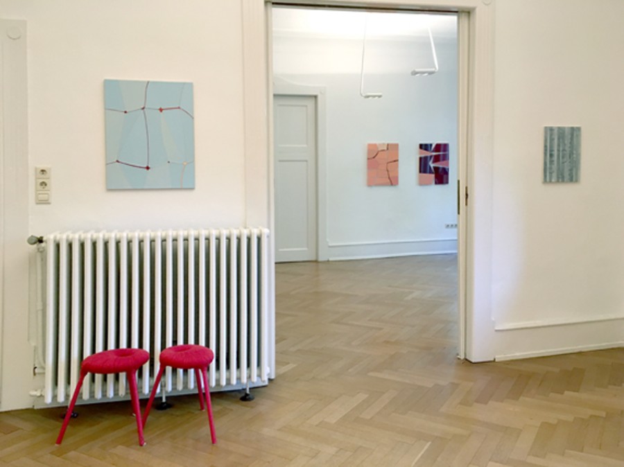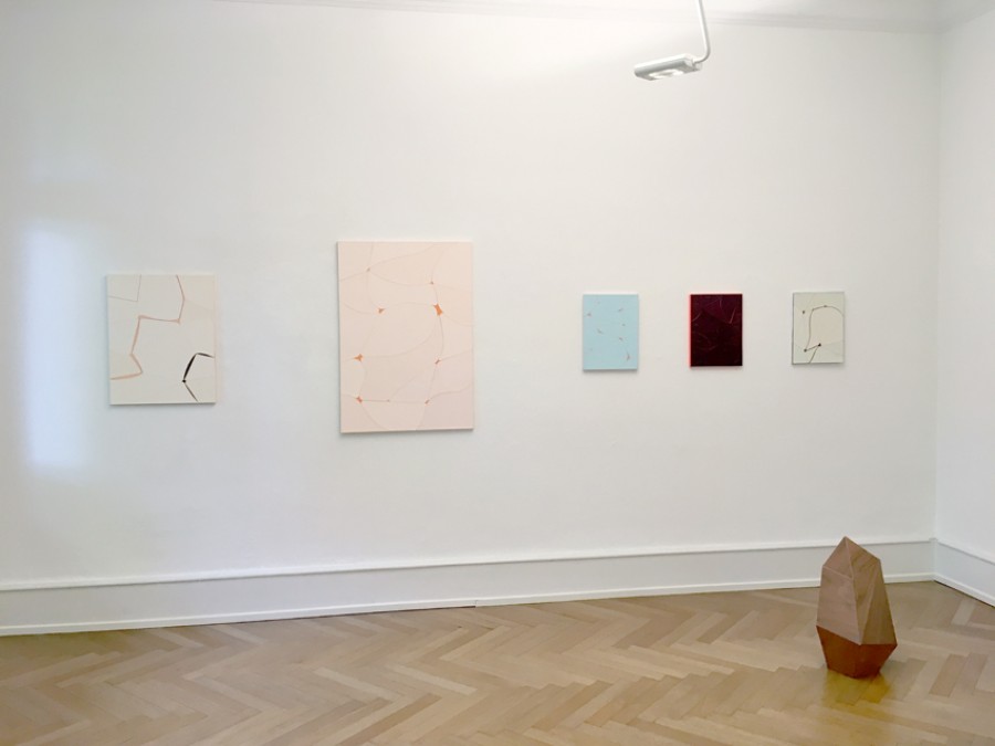 Der 1951 geborene konzeptuelle Maler Klaus Schneider untersucht das komplexe Verhältnis von Wahrnehmung, Sprache und Kommunikation in bildnerischen Ausdrucksformen. Wie in der letzten Ausstellung 2016 hat er die Kompositionsform des Haiku, dessen 5 - 7 - 5 - Struktur, für seine gemalten und skulpturalen Arbeiten übernommen, allerdings ohne dessen inhaltlichen Bezug. Nichts wird illustriert. Die organisch-geometrischen Formen zielen eher auf ein poetisches Wirkungselement.