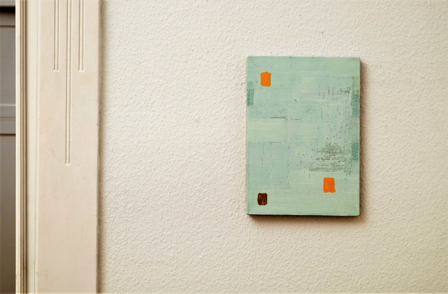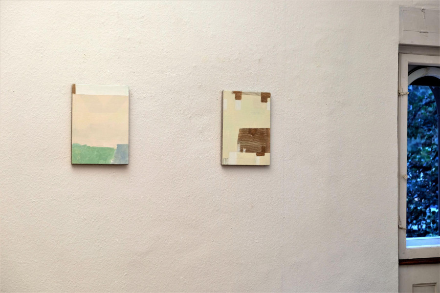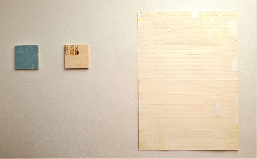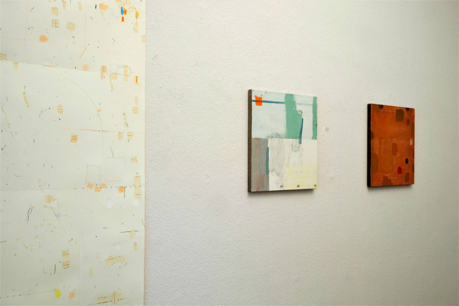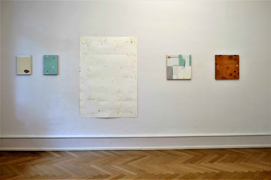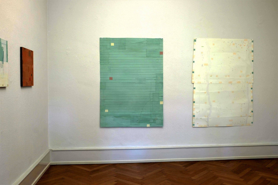 In der Ausstellung „Eine Art Ausdehnung zwischen den Rändern“ sind neue großformatige Papierarbeiten neben eher kleinformatiger Malerei zu sehen. Die neuen Papierarbeiten, nun deutlich stärker auf Farbigkeit hin angelegt, konstituieren sich von den Rändern weg und zu ihnen hin, aus einer Vielzahl von farbigen Setzungen und Faltungen, von Verwerfungen und Ergänzungen. Ein Nacheinander wird zum Nebeneinander; ein im Kern dynamischer Prozess wird in ein temporäres Equilibre gebracht, um durch den Blick des Betrachters wieder in Bewegung zu geraten.